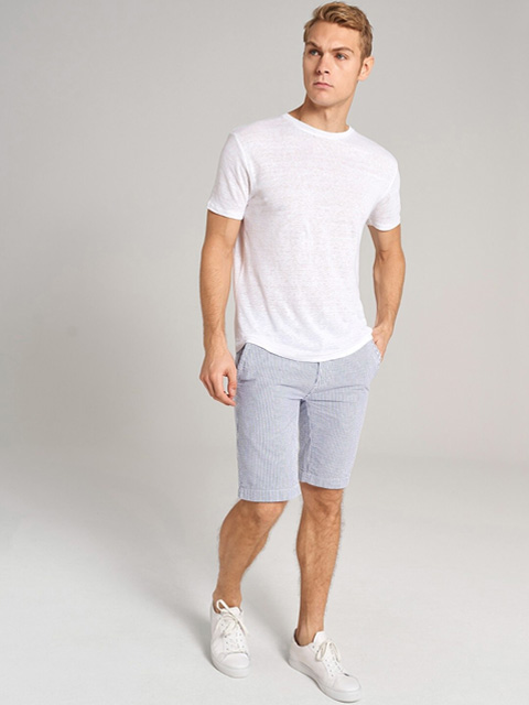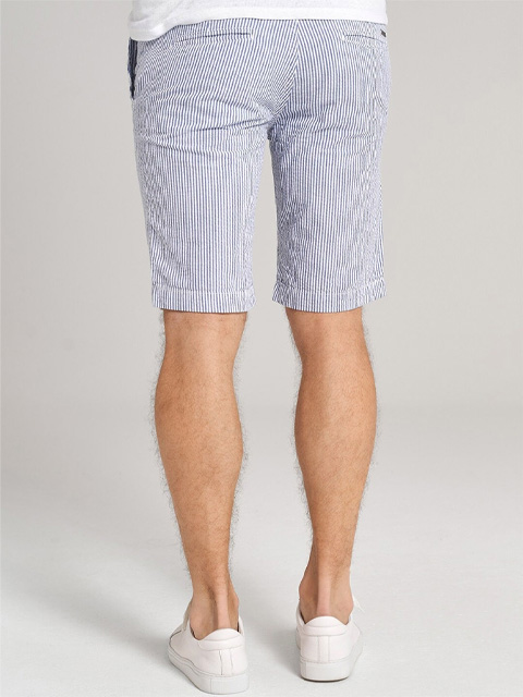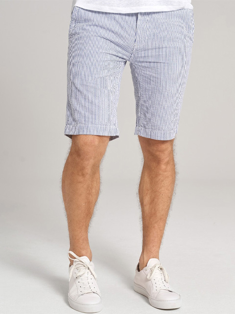 Men Blue & White Striped Slim Fit Cotton Shorts